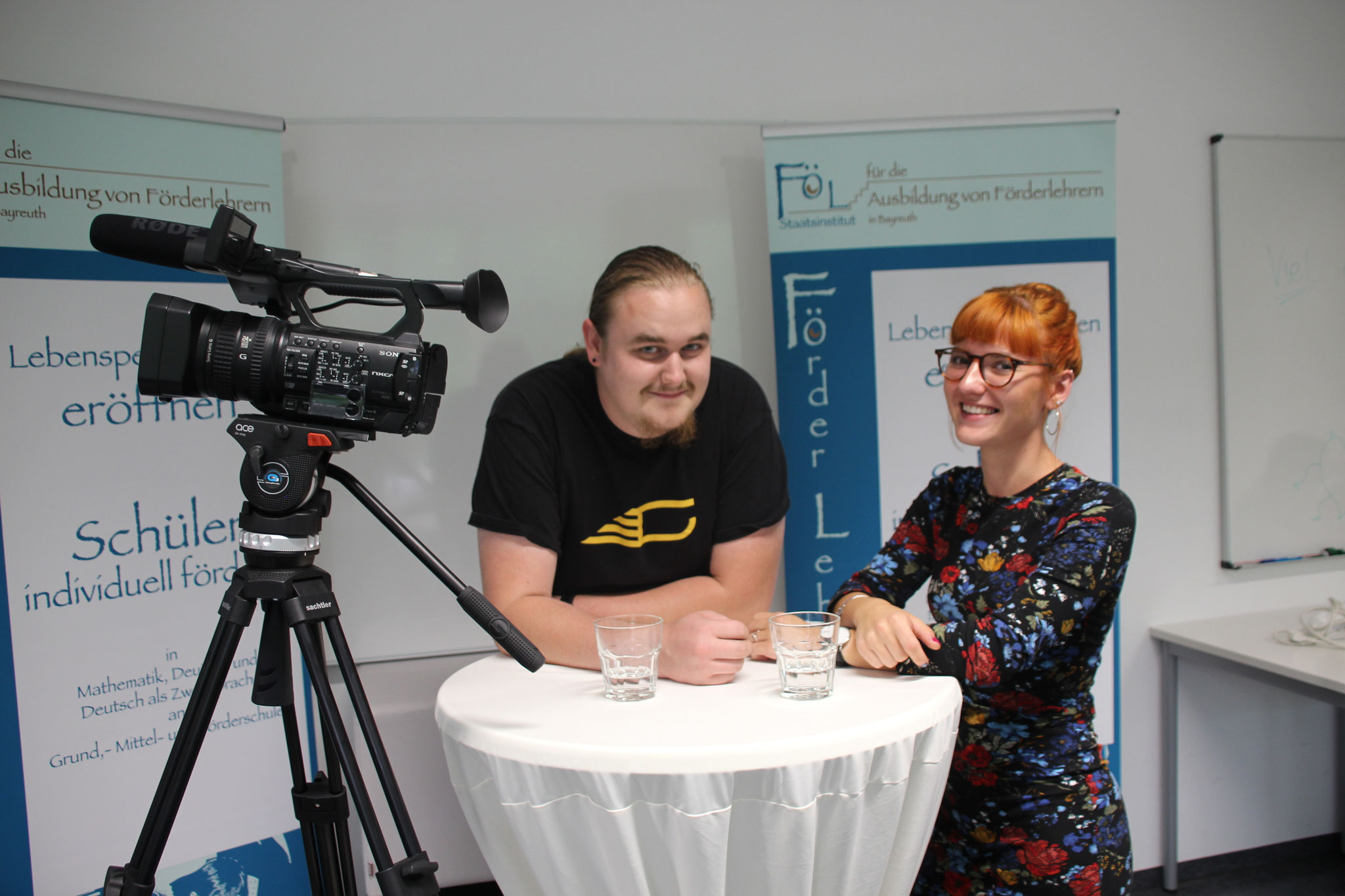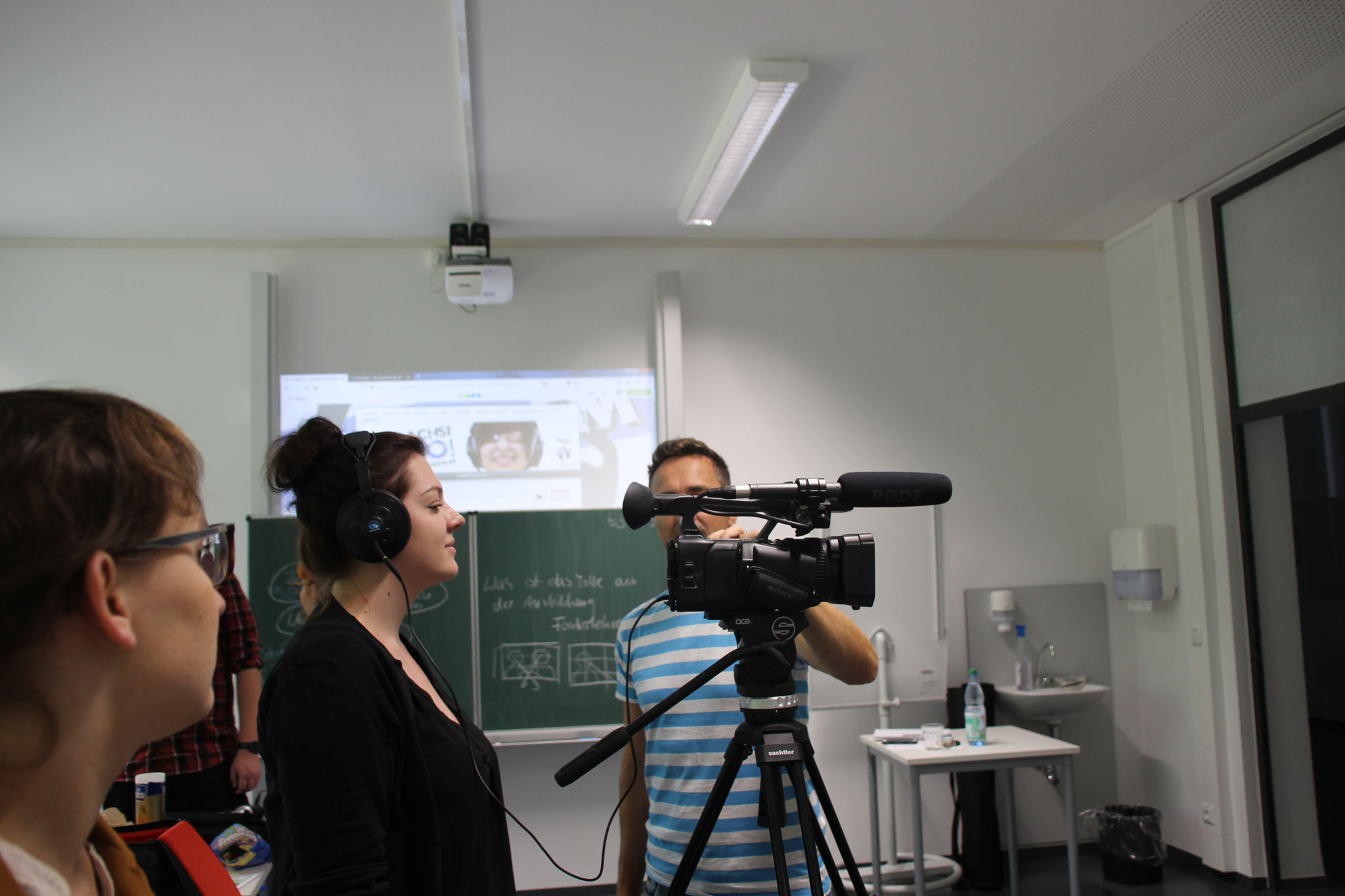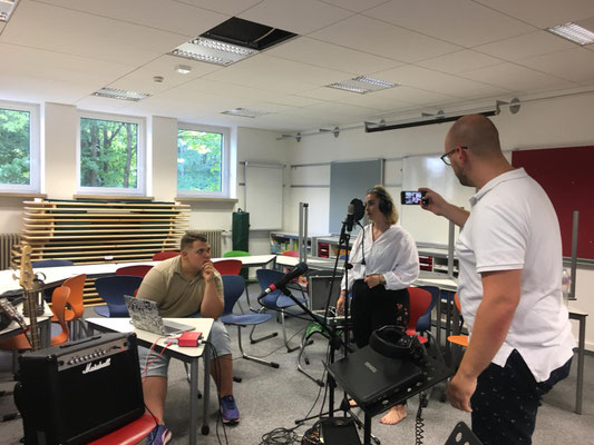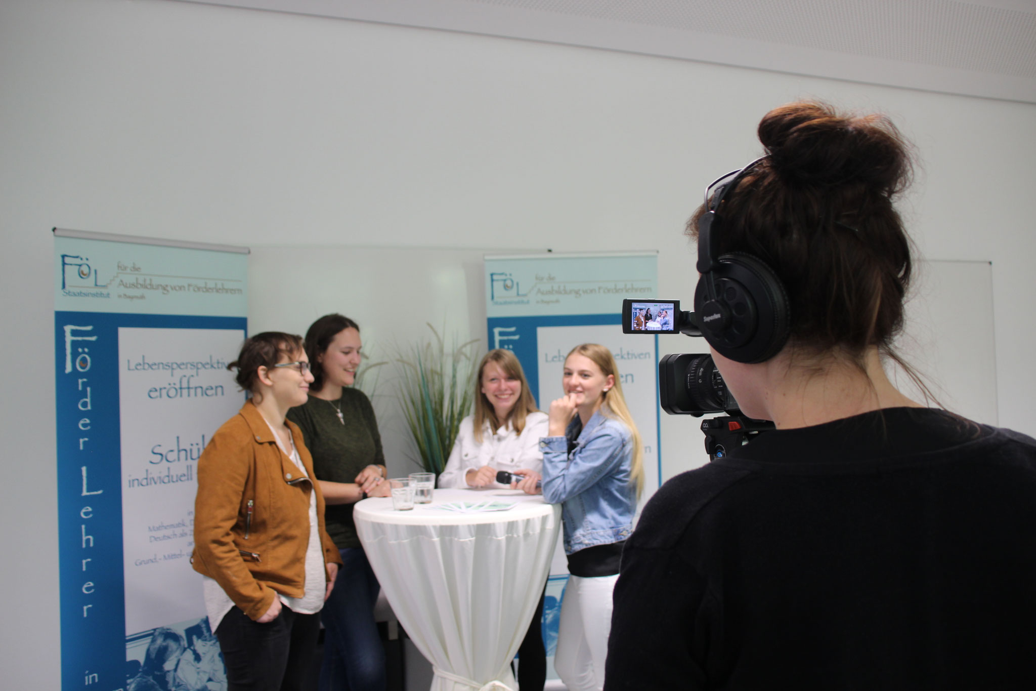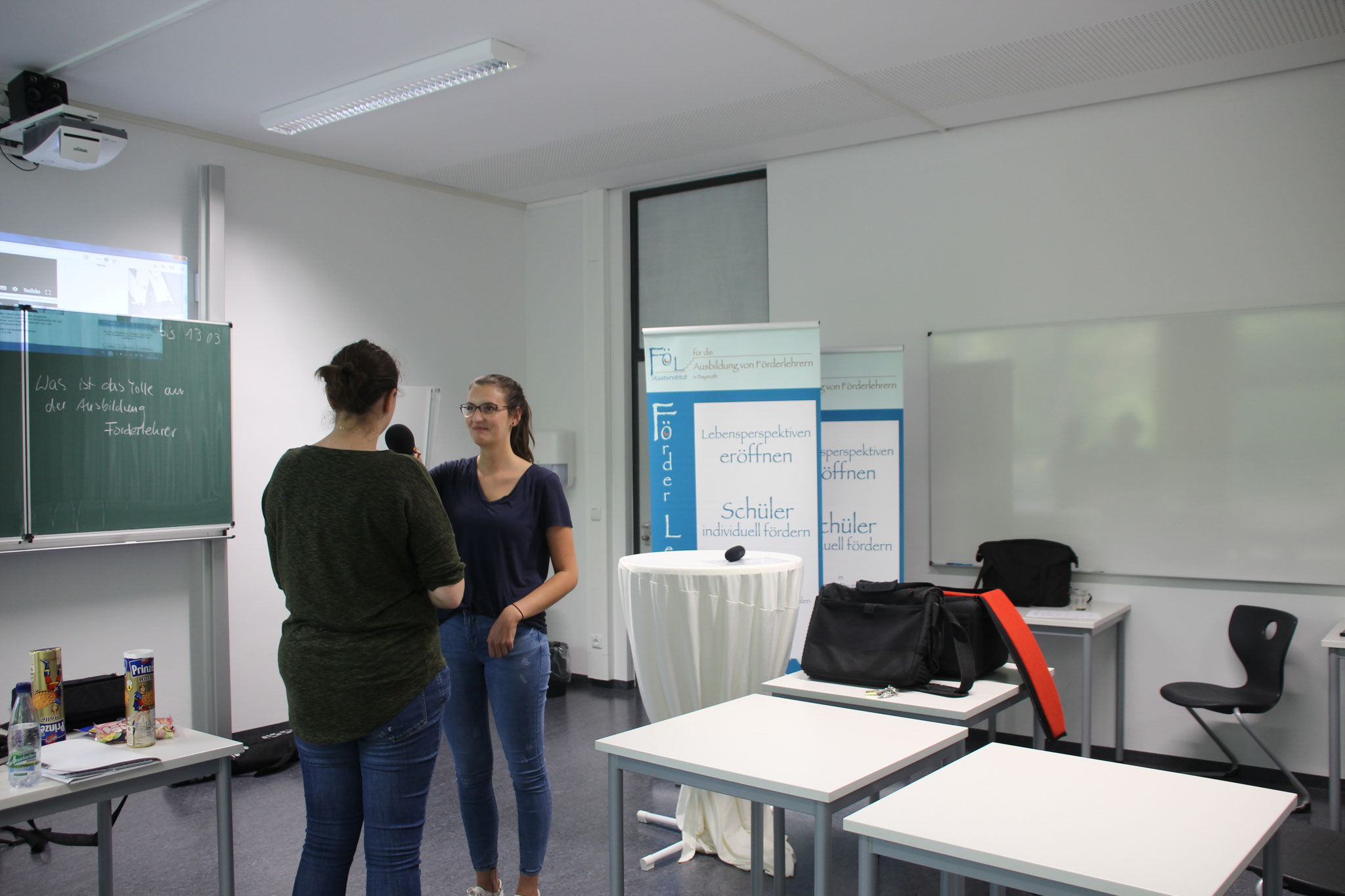 Wir, die Studierenden Oliver Mulzer, Julia Winterstein, Rosi Mühlhuber und Anna Lechler wurden von den zwei Schülerinnen Milena und Marie interviewt. Die beiden Schülerinnnen stellten uns spannende Fragen zum Ausbildungsalltag und zum Berufsbild des Förderlehrers. Das Interview wurde von Annika Nitschke, ebefalls Studierende, mit einer Kamera aufgezeichnet. Dabei sammelten wir viele interessante Erfahrungen im Bereich Film und Radio.